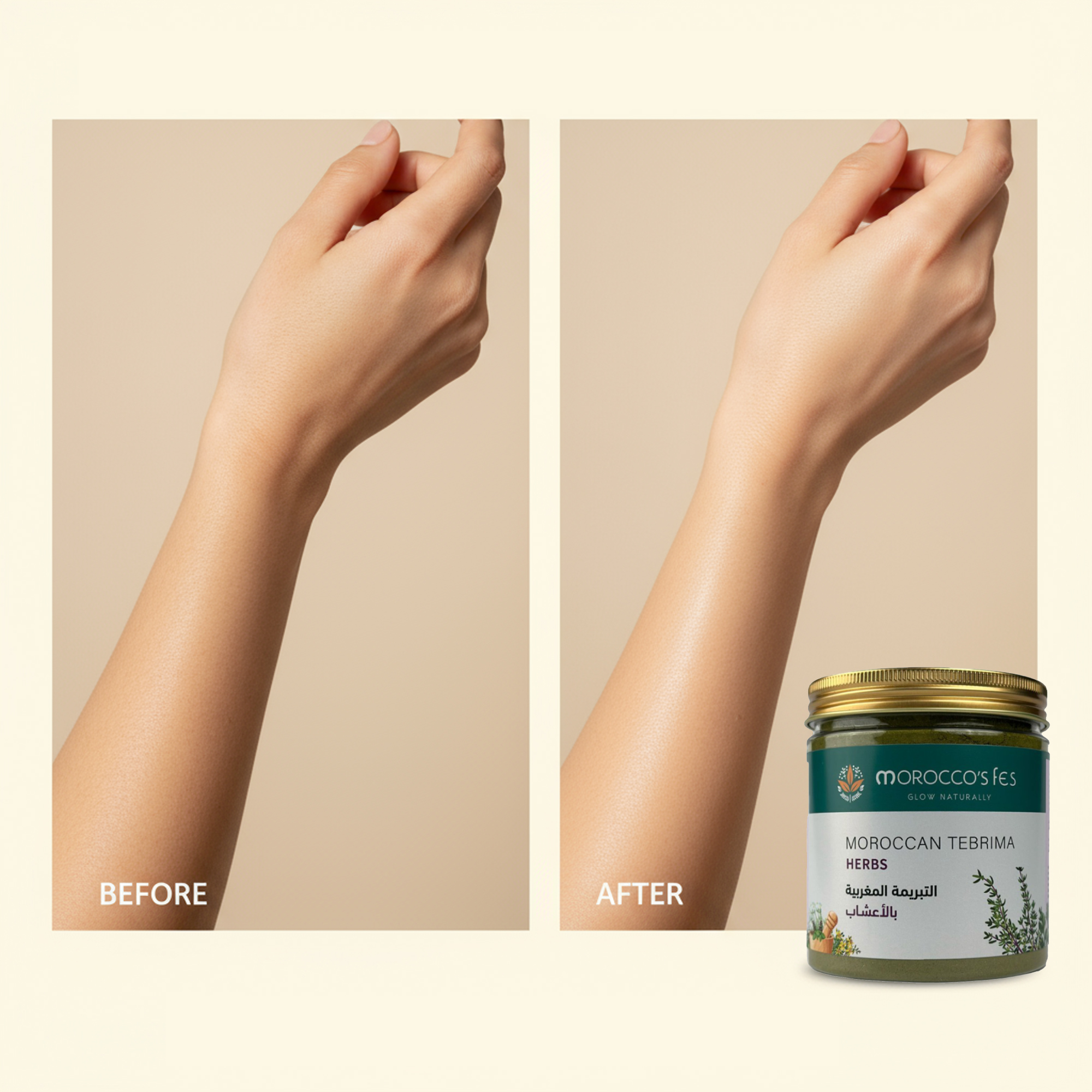 المميزات: تنظف الجسم بعمق وتشيل الخلايا الميتة تفتح وتوحد لون البشرة من أول استخدام ترطب الجلد وتخليه ناعم ومشرق تشد البشرة وتخليها أكثر حيوية ونضارة تركيبتها طبيعية 100٪ بدون مواد كيميائية رائحتها عطرية مغربية فاخرة وثابتة تناسب جميع أنواع البشرة حتى الحساسة تحسن ملمس البشرة وتخليها حريرية تستخدم قبل الحمام المغربي لنتائج أفضل تغذي البشرة بالأعشاب والعسل الطبيعي ـــــــــــــــــــــــــــــــــــــــــــــــــــــــــــــــــــــــــــــــــــــــــــــــــــــــــــــــــــــــــــــــــــــــــــــــــــــــــــ تفاصيل سريعة: الخامة: أعشاب مغربية طبيعية 100٪ الرائحة: عطرية عشبية مغربية فاخرة المنشأ: المغرب القوام: بودرة عشبية تُخلط قبل الاستخدام الوزن: يختلف حسب العبوة المحتويات: 1x عبوة تبريمة مغربية بالأعشاب الطبيعية
