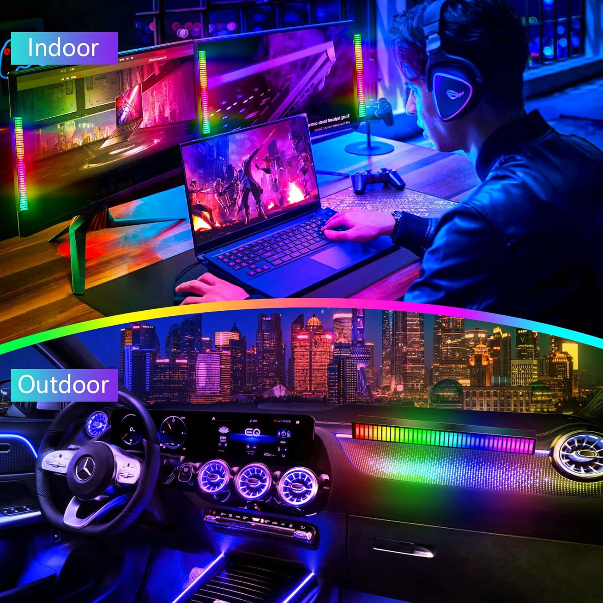 اشحن الإضاءة أول، ثبّتها في المكان المطلوب، فعّل التطبيق واختر وضع الإضاءة أو السرعة، وتتحرك الإضاءة تلقائيًا حسب الصوت أو الموسيقى.