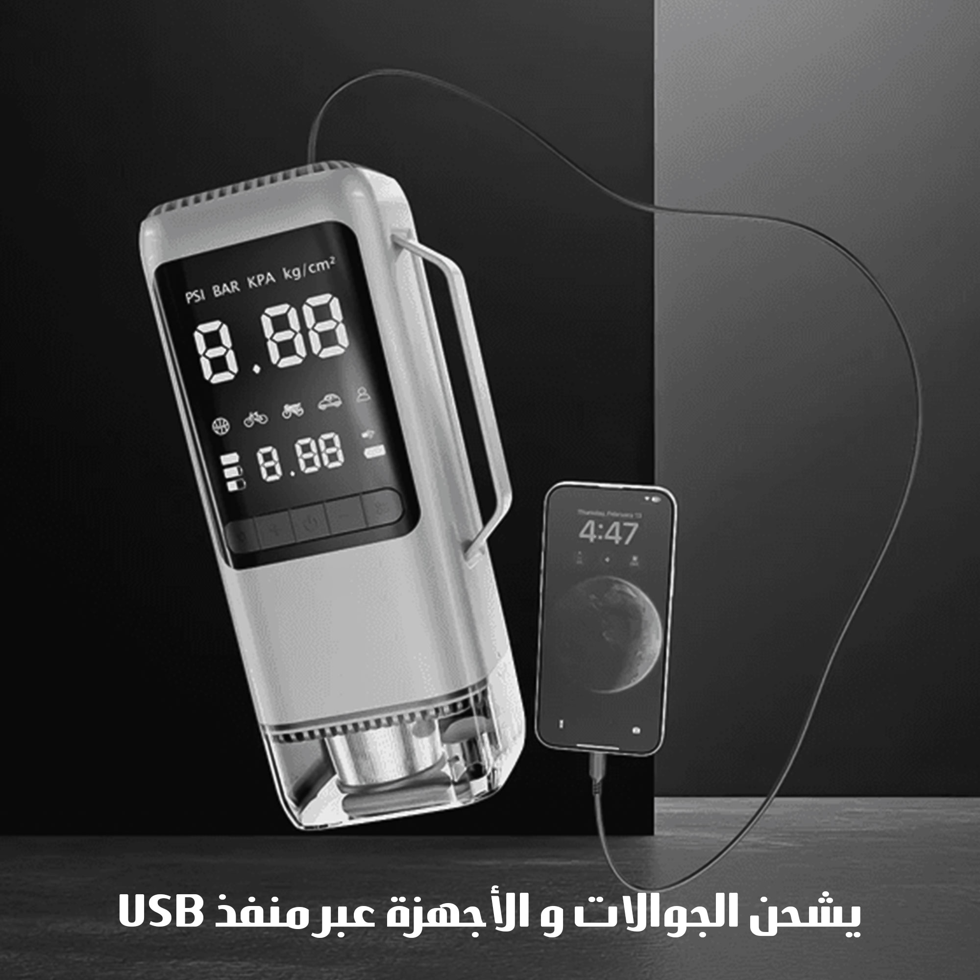بطارية 8000mAh تشغل، تنفخ، تكنس وتخزن طاقة.