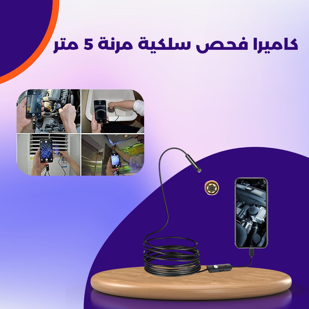 ودّك توصل لأماكن ضيقة أو مظلمة؟ هالكاميرا بتسهل عليك كل شيء! كاميرا فحص بطول 5 متر، سلك شبه صلب، تتحرك بسهولة وتوصل لأماكن ما تقدر توصل لها يدك. ضد الموية IP67، وفيها 8 لمبات LED قابلة للتعديل عشان تشوف بوضوح حتى في الأماكن المظلمة.