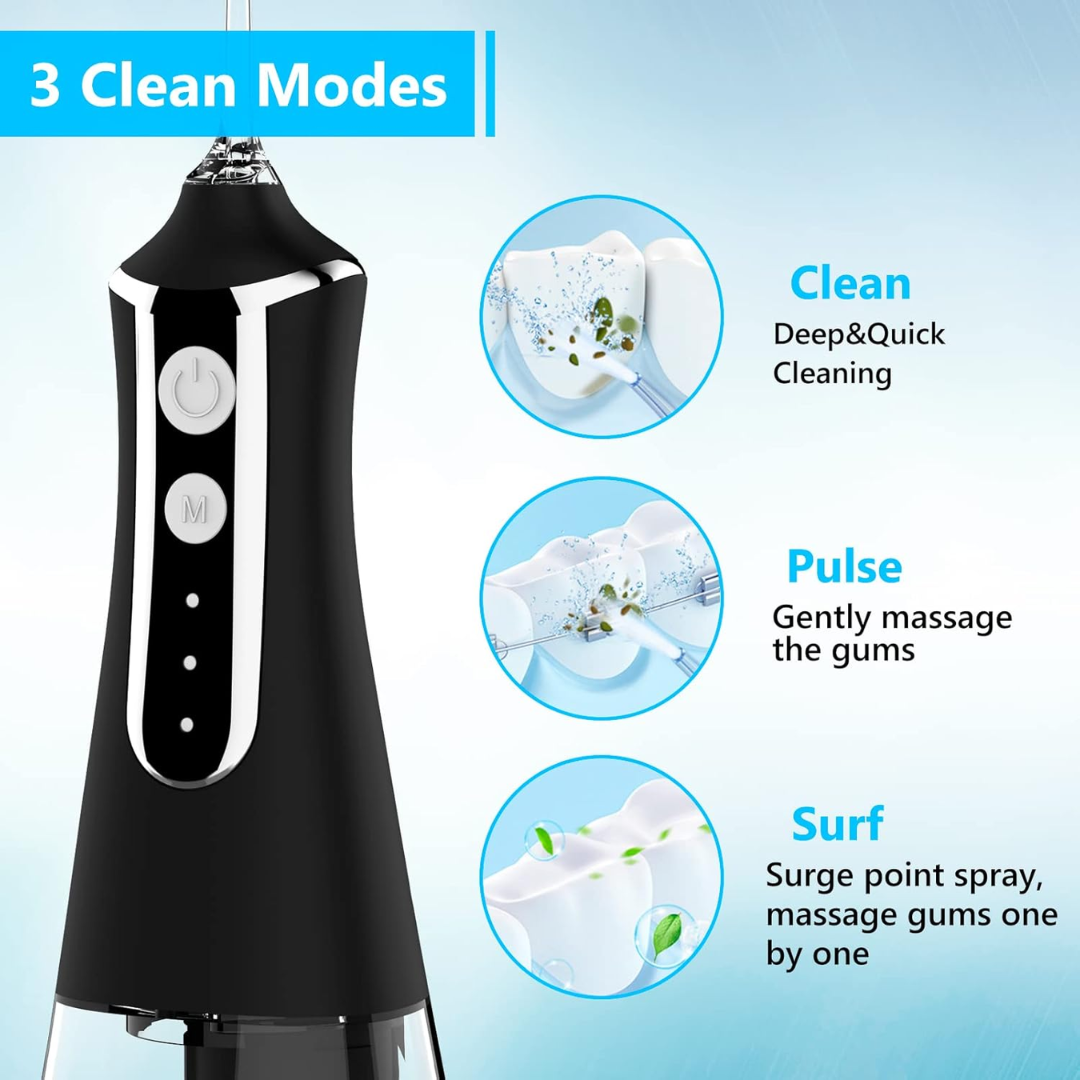 ينظف بين الأسنان واللثة باستخدام ضغط ماء دقيق
