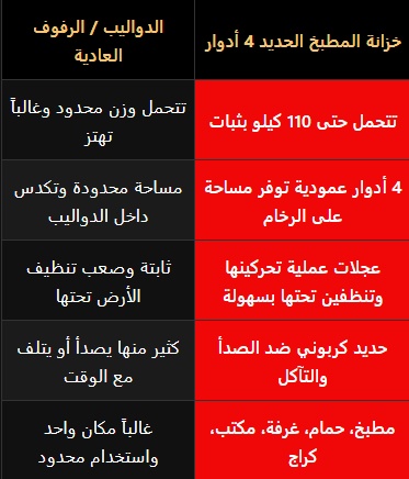 عدد الأدوار: 4 أرفف بارتفاع حوالي 27 سم لكل رف.