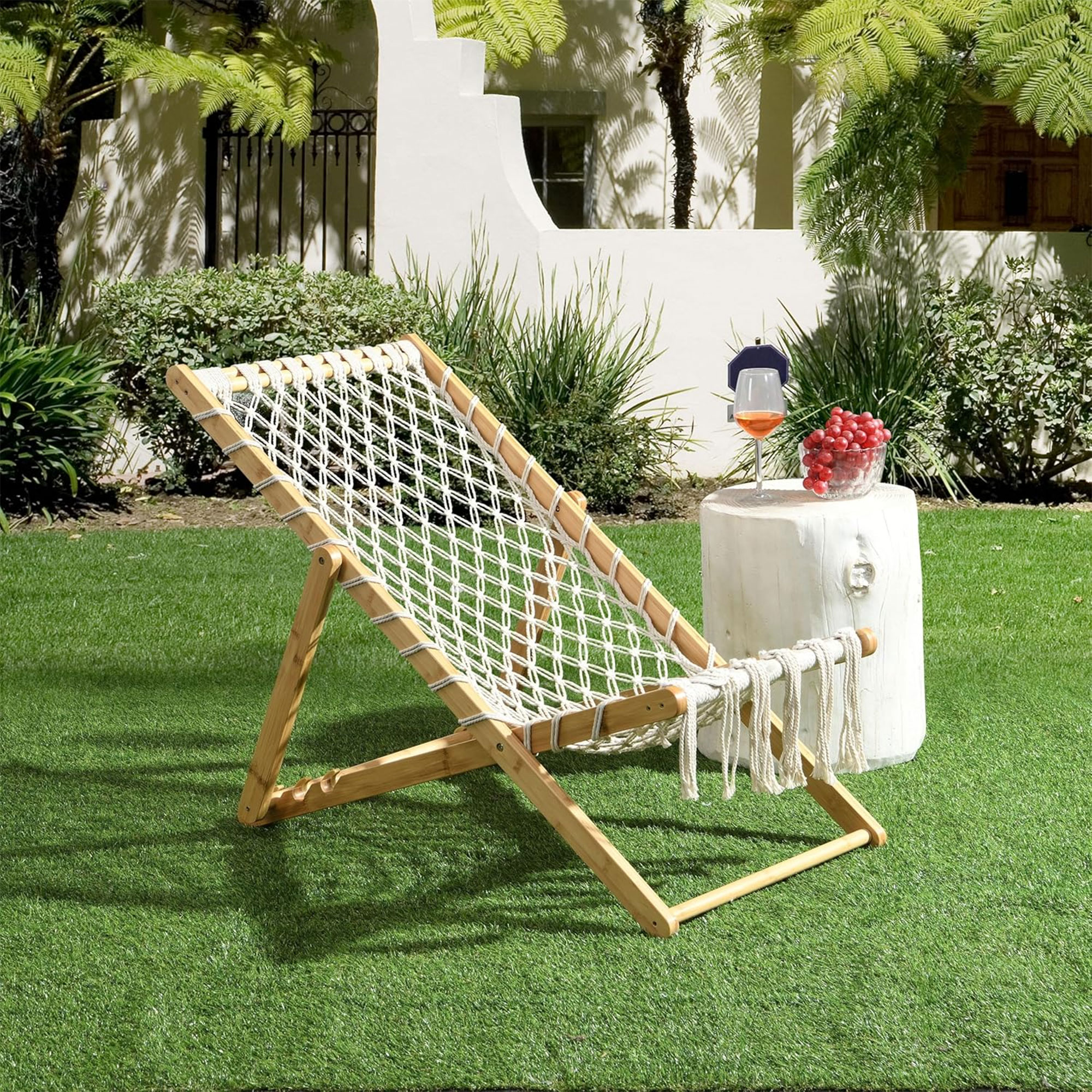 1 × كرسي بامبو بحبال منسوجة يدويًا