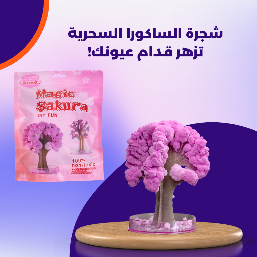 مع "شجرة الساكورا السحرية"، تقدر تشوف شجرة الكرز اليابانية تتفتح قدامك خلال 6 ساعات بس! كل اللي عليك، تركّب الشجرة وتصب السائل السحري، وبعدها استمتع بمشهد نمو الكريستالات الوردية كأنك في ربيع طوكيو!